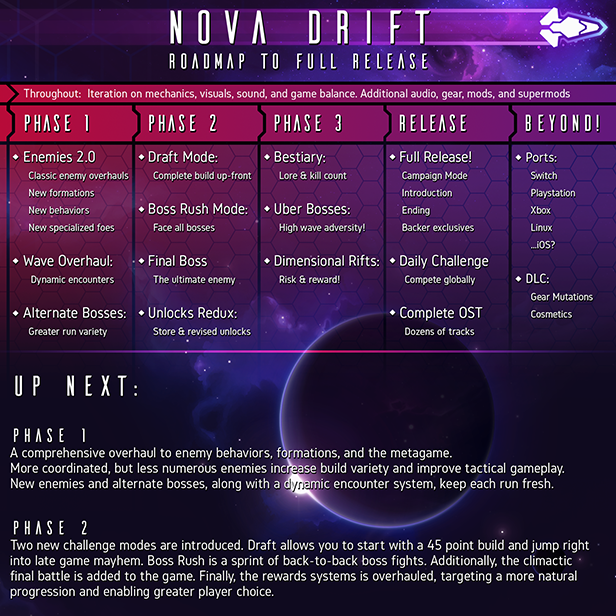 Nova Drift is a living game. Frequent updates will continue to expand the depth and content of the game world.