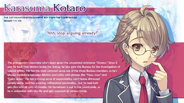 In order to compensate for the broken statue, the principal orders him and the boy who caused the incident to work for the school’s “Bureau for the Investigation of Special Affairs.”