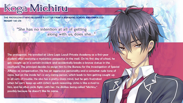 Koga Michiru is a newly enrolled first-year student at a academy with a notably large clock tower located deep in the mountains. Unfortunately, on his first day of teachings, he gets caught up in some sudden trouble and accidentally breaks an expensive-looking statue.