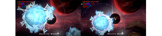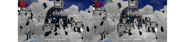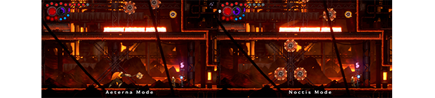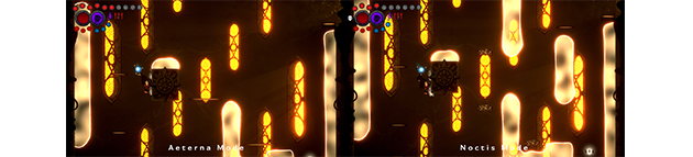 In Aeterna Mode, you have more hazard-free space to jump, dodge, and attack enemies. In Noctis Mode, you are required to be more precise with the controls to avoid all environmental hazards, such as spikes.