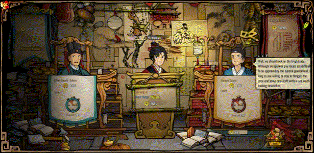 Hongye has been long ignored by the Emperor and you have been tasked to revive it! Securing profit and stable growth is key to reviving Hongye. Every choice you make will contribute to your destiny as well as the land you rule. A small, split-second decision may result in a completely unanticipated event. You have to tend to council's requests, manage your advisers, lead your people and continuously nurture and utilize your lands to prosper while fight against the natural and urban disasters.