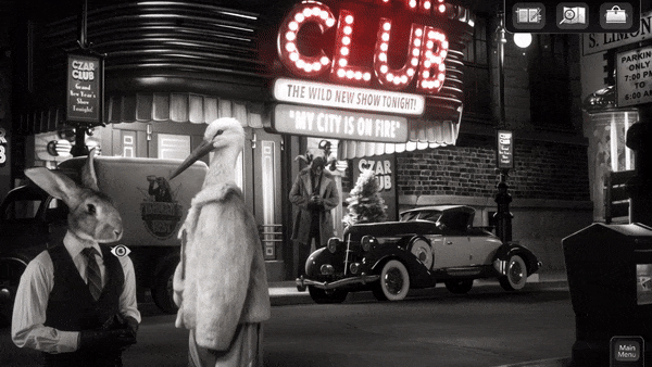 Chicken Police has a weirdly-stunning visual style made with the usage of real photos and photo-realistic 3D backgrounds, inspired by classic film-noir movies like The Big Sleep, Double Indemnity or Gilda and games like Grim Fandango, Policenauts, Snatcher, L.A.Noire, Aviary Attorney or the Tex Murphy series. The game was also heavily influenced by animated features like Porco Rosso, Fantastic Mr. Fox, and the series: BoJack Horseman.