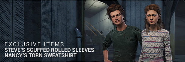 Stranger Things is a brand-new Chapter for Dead by Daylight. The Stranger Things Chapter includes a new map, the Underground Complex, located below the Hawkins National Laboratory. A Demogorgon is the new untamable Killer. Against the Demogorgon stands not one, but two new Survivors: Nancy Wheeler, a tough aspiring journalist, and Steve Harrington, a former high school jock with a knack for finding trouble. The Stranger Things Chapter also features two exclusive cosmetic items: Steve’s Scuffed Rolled Sleeves and Nancy’s Torn Sweatshirt.