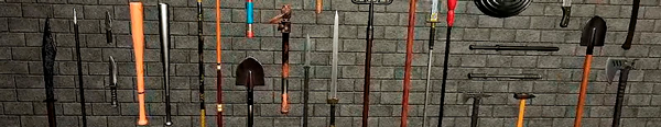 Different weapons — from tactical karambit and shovel to ancient chineese swords and spears — are here and waiting for you. Don't foget some old rusty pipes and pitchforks!
