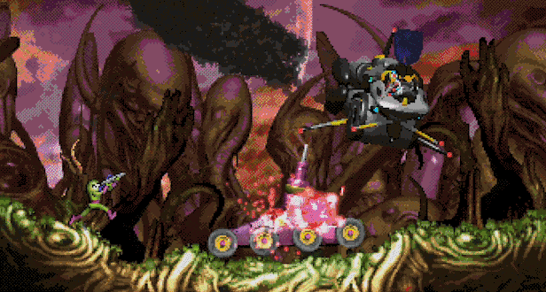 - Unique render pipeline that combines modern lightning, 2D sprites and 3D models pixelated in real time consistently and with a restricted color palette for an authentic retro feel.
