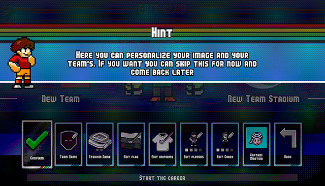 - The teams can be fully customized (name, players, shirt colors, club flag, etc.)