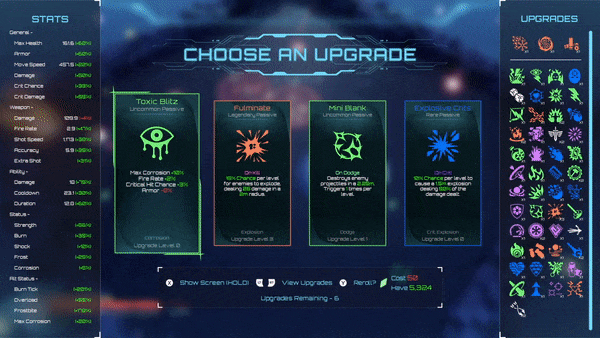 - 130+ infinitely stacking upgrades to craft your build each run.