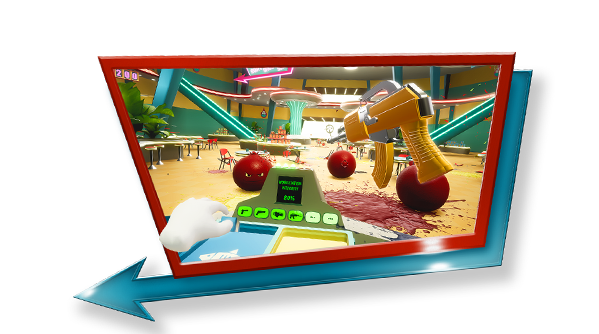 Scan, serve & pack produce whilst shooting guns to defend your store from mutant fruit!