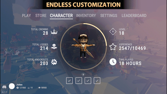 - Customize your character with 60+ skins (each with 4 different variations) and 100+ weapons (Some skins and weapons are only purchasable with crowns you get from winning the battle royale)