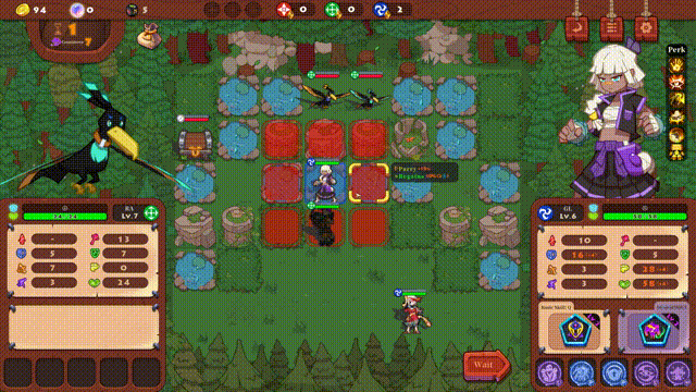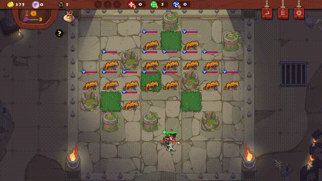 Characters can interact with terrain. For example, the Caster's talent can transform grass into lava terrain, which interacts with other classes' talents, such as Wanderers, to create interesting gameplay and genres.
