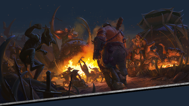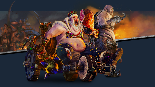 As Ogre warlords Greasus Goldtooth and Skrag the Slaughterer, lead an army of brutes, bandits and gluttons to satisfy their hunger for war.