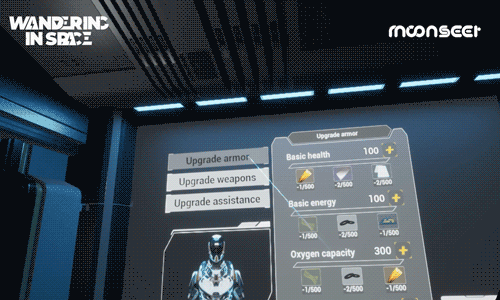 Wandering in Space is a single-player virtual reality first-person shooter featuring role-playing and roguelike elements. The story is set in 2598 when the environment deteriorates to a critical point and the "Doomsday Virus" either kills or mutates the infected. Humans establish the Federation and use the last remaining resources to build colonial satellites and spaceships scattered in Earth orbit. Surviving healthy humans are transferred to the space in batches to stay away from viruses and pollution, leaving the rest of humans on Earth, struggling amid disease and famine.